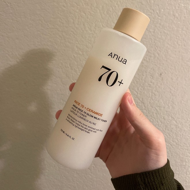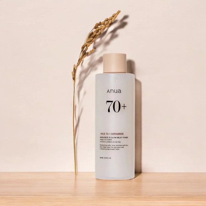 Anua Rice 70% + Niacinamide Glow Milky Toner is a nourishing, brightening toner with a